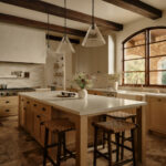 They hired interior designer Chrystel Laporte of Un jour d’avril and landscape architect Élodie Wehrlen of Côté Outdoor to help them turn it into their dream home. Designer Laporte began the design process by listening closely to the owners’ desires and collecting inspirational photos to reflected their wishes. “These mood boards help me tailor the feel of the rooms throughout the project,” she says.