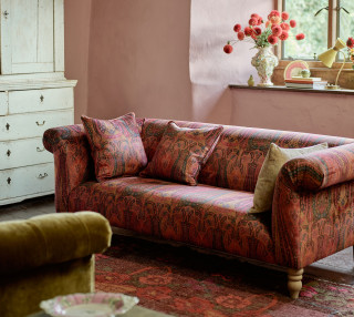 Sofa: Exbury, V&A Threads of India Opulent Velvets in Paisley Splendour Rouge, Sofas & Stuff