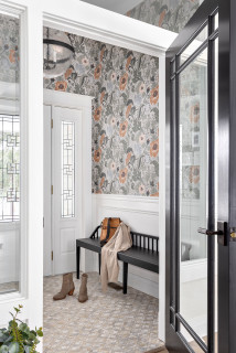 “They had loved their time in Vancouver and really connected to a lot of the more streamlined design style there,” Steeves says. “They were keen to have some west coast influence in the new design for their home.” The wife also adored the gardens surrounding the house and wanted them to play a central role in the design. She hoped to highlight views and bring the outdoors in through color and pattern. Steeves responded with a transitional approach that blends colorful, traditional Newfoundland elements with neutral, streamlined Vancouver influences and nature-inspired details.