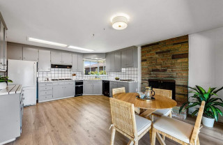 Without an island, storage and prep space were limited and the center of the room felt like wasted territory. An eating area with a large fireplace sat just off the kitchen. “Having that giant fireplace inside the kitchen made no sense at all,” Adams says.