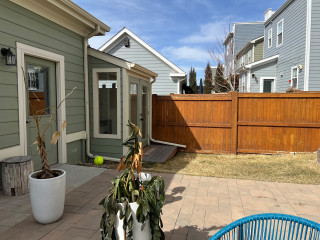 For homeowners deciding where to save and splurge, Robinson recommends prioritizing vertical surfaces over paving. “Using the concrete separated by turf kept the patio interesting and on budget,” she says. “It saved a lot of money over choosing something like a porcelain patio surface.”