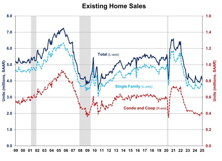 Total existing home sales, including single-family homes, townhomes, condominiums, and co-ops, rose 4.8% to a seasonally adjusted annual rate of 4.15 million in November, the highest level since March 2024. On a year-over-year basis, sales were 6.1% higher than a year ago, the largest annual gain since June 2021.