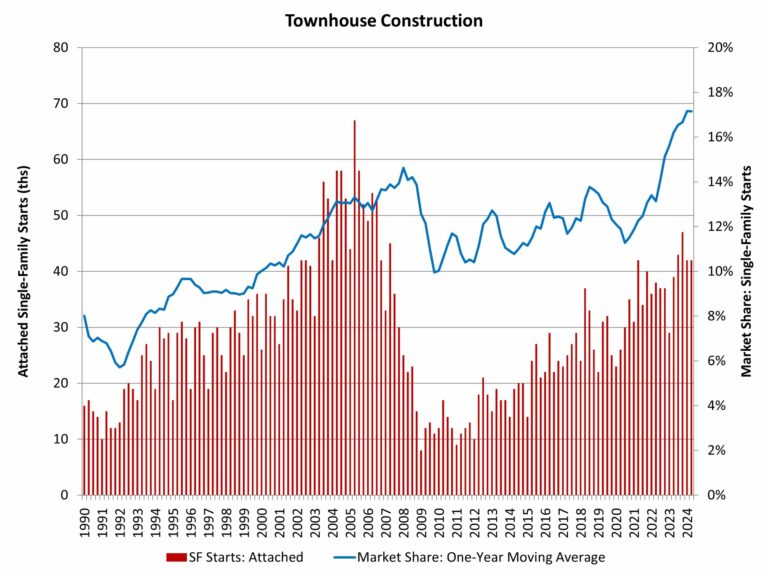 The long-run prospects for townhouse construction are positive given growing numbers of homebuyers looking for medium-density residential neighborhoods, such as urban villages that offer walkable environments and other amenities. Where it can be zoned, it can be built.