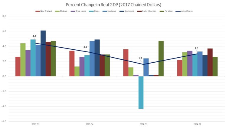 In the second quarter, RFI subtracted 19 basis points to the headline GDP growth rate, marking the second straight quarter of negative contributions. RFI was 4.0% of the economy, recording a $1.2 trillion seasonally adjusted annual pace. Among the two segments of RFI, private investment in structures shrunk 4.5%, while residential equipment fell 7.9%.