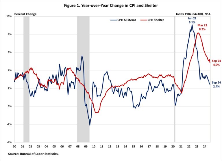 The index for shelter makes up more than 40% of the “core” CPI. The index saw a 0.2% rise in September, following an increase of 0.5% in August. Both the indexes for owners’ equivalent rent (OER) and rent of primary residence (RPR) increased by 0.3% over the month. These gains have been the largest contributors to headline inflation in recent months.