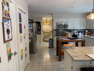 Homeowners’ request. “The homeowners loved their home, but it wasn’t working for their growing family,” says designer Maggie Lunetta. “The kitchen had limited storage, an undersized island and appliances that were dated and starting to fail. They also had two dining areas, but the formal dining room was rarely used. We decided to tap into that underutilized space to expand the kitchen footprint, making room for a large island with seating, a walk-in pantry and more efficient — and hidden — storage throughout. The goal was to create a kitchen that felt open, functional and family-friendly while still maintaining a clean, elevated aesthetic.”